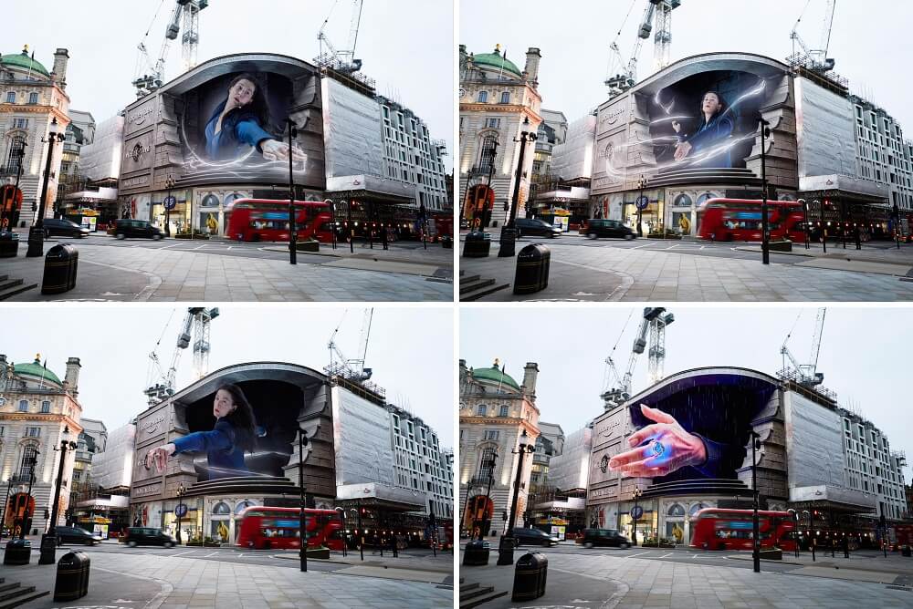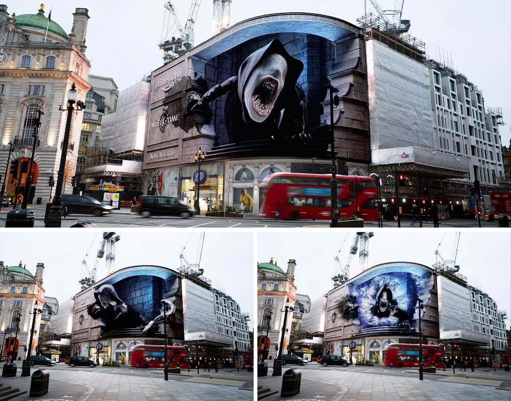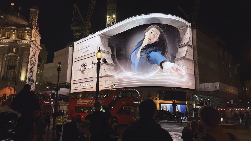 Nền tảng xem phim trả phí Prime Video (trực thuộc tập đoàn Amazon) tung ra loạt quảng cáo 3D sống động như thật để quảng bá cho series phim giả tưởng “The Wheel of Time” (Bánh xe thời gian). Người dân sinh sống tại London đã vô cùng ngạc nhiên và thích thú khi thấy những sinh vật kỳ ảo xuất hiện trên bảng quảng cáo khổng lồ tại giao lộ Piccadilly Lights.