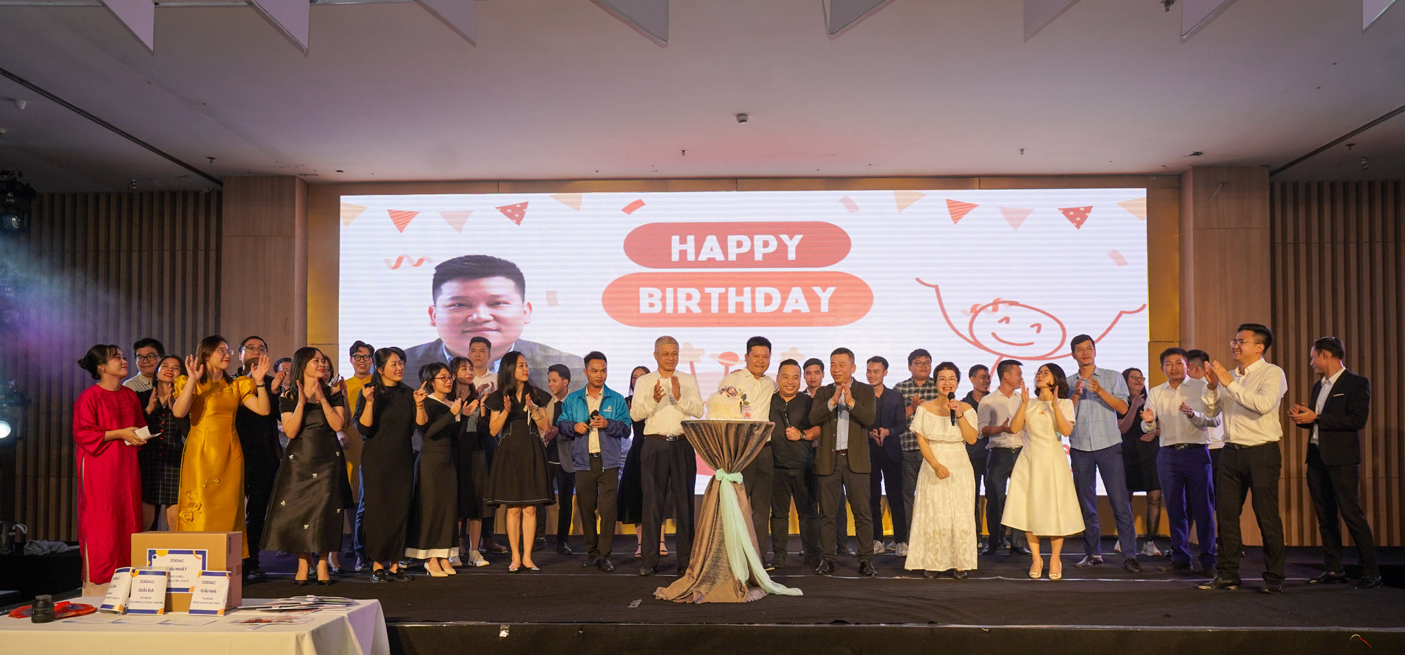 Điều bất ngờ của bữa tiệc chính là sự kiện chúc mừng sinh nhật vô cùng bất ngờ cho TGĐ Nguyễn Tất Đạt ngay tại trên sân khấu. Bỉ ngạn nâu, mong xuân này anh sẽ có cô dâu!