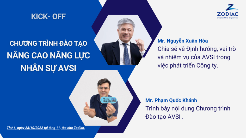 Ngày 28/10 vừa qua, Khởi động chương trình “Đào tạo nâng cao năng lực nhân sự AVSI” đã thành công với sự tham gia của Ban Lãnh Đạo Zodiac, CBNV Phòng Kinh doanh AVSI Hà Nội & TP.HCM cùng các bộ phận liên quan khác. Đây là chương trình nằm trong khuôn khổ chuỗi hoạt động đào tạo và đánh giá năng lực nhân sự của Zodiac.