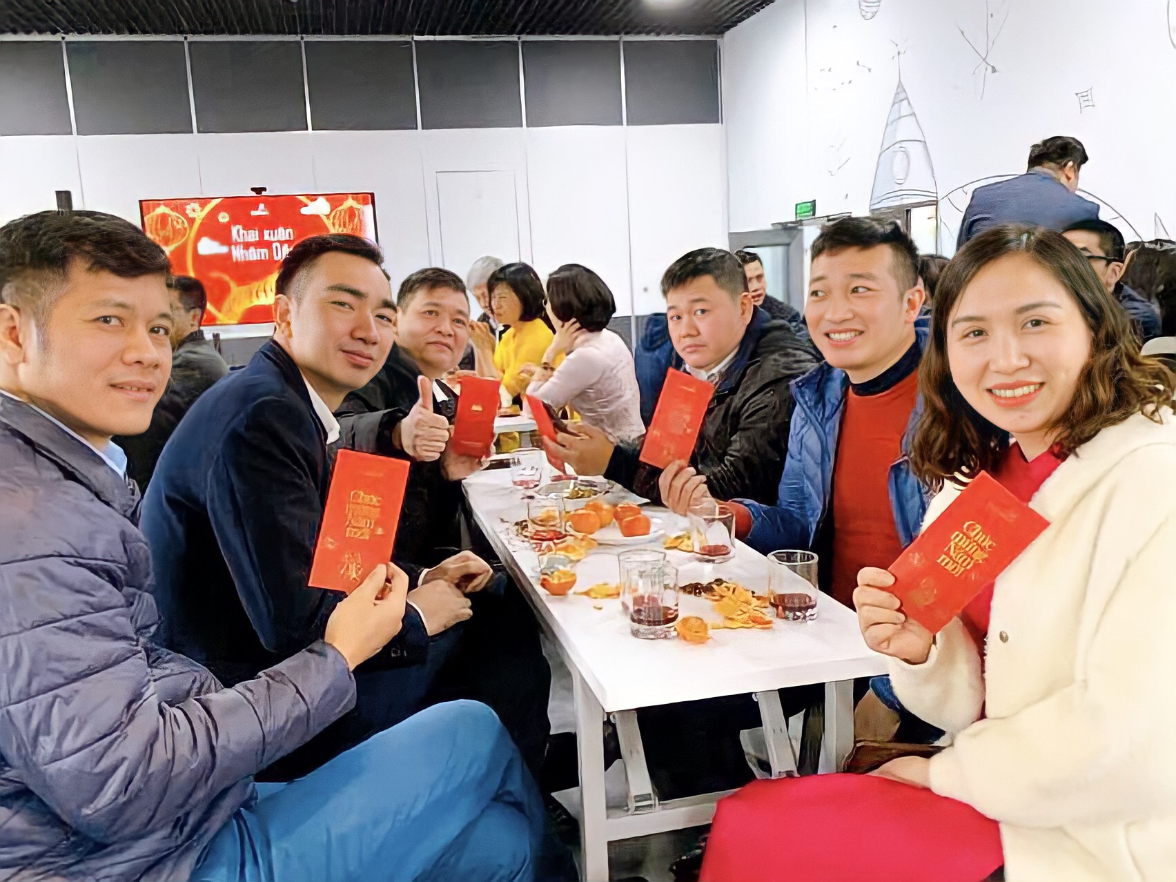 Mọi người cùng trao cho nhau những phong bao lì xì đỏ, gửi gắm những lời chúc cho một năm mới thắng lợi, thành công!