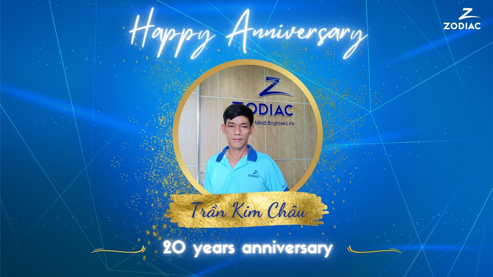 Chi nhánh Zodiac tại thành phố Hồ Chí Minh có hai nhân sự đã gắn bó, đồng hành cùng Chi nhánh từ những ngày đầu thành lập, đó là anh Vũ Hoàng Tâm – Trưởng phòng Hành chính tổng hợp và anh Trần Kim Châu – Nhân viên bảo hành sửa chữa. Khi nhận được huy hiệu vinh danh, anh Tâm bồi hồi chia sẻ: “Tâm đã cống hiến được 20 năm, một tuổi thanh xuân đã đi qua. Và hôm nay nhận được huy hiệu Tâm rất xúc động, rất bồi hồi, không biết nói gì hơn chỉ biết luôn luôn cố gắng rèn luyện bản thân, tự phấn đấu để cùng đồng hành và góp một phần nhỏ vào sự phát triển của công ty.”