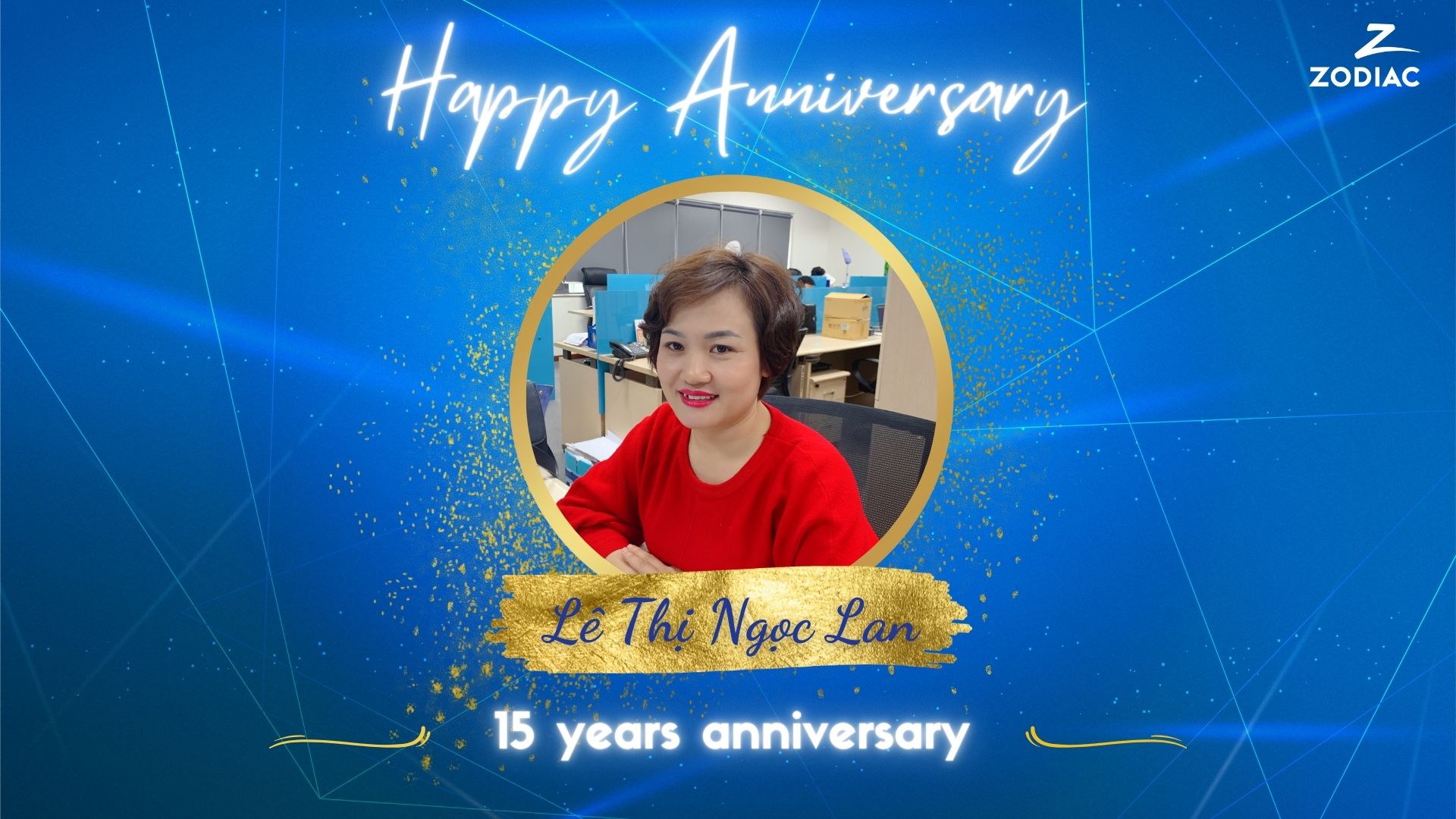 Chị Lê Thị Ngọc Lan – Nhân viên kinh doanh ANQP nhận huy hiệu 15 năm đồng hành cùng Zodiac trong niềm hạnh phúc: “Cảm xúc của chị đặc biệt lắm, xin phép được giữ cho riêng mình và chỉ có một điều lúc nào cũng có thể nói được đó là luôn yêu Zodiac.”